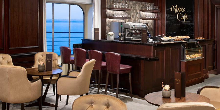 Warm and inviting, the Mosaic Cafe will quickly become one of your favourite nooks on the ship. With skilled baristas freshly preparing all your favourite coffees and light bites throughout the day, it offers a relaxed place to unwind between activities, socialise or simply watch the world go by.