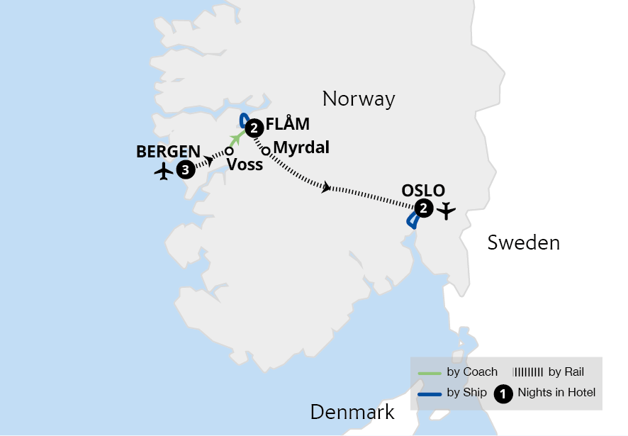 Join us on a summertime journey across the length of Norway - from Oslo to the Arctic Circle. Travel on four of the country's world-renowned rail routes, the Flåm, Bergen, Nordland and Rauma railways and cruise across the Geirangerfjord, discovering otherworldly landscapes. On this top-rated tour of Norway's beautiful cities and the arctic...